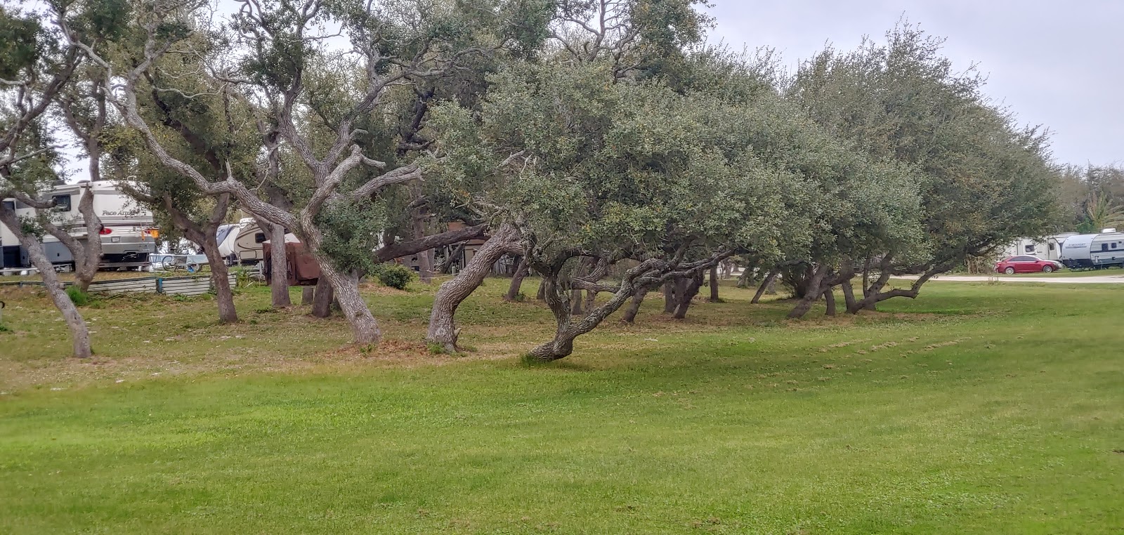 The trip over to Rockport, Texas was pretty easy, for the most part. Until we hit the Corpus Christi area, and the strong, gusting winds reappeared. At 55 mph, I still needed to do battle with the steering wheel. Oh, did I mention, we bought gas for $1.95/gallon. I haven't seen gas under $2/gal in years. Our RV park is on a pennisula, surrounded by three Bays: Copano Bay, Aransas Bay and Corpus Christi Bay. On the other side of the Bays is a very long barrier island, with several names: Padres Island, Mustang Island, San Jose Island, and Matagorda Island. We plan to visit those while we are here.